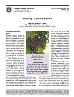The basis for this project was to show that grapes could again become a viable crop for Hawaii growers at low elevations. This addition of a crop, in demand by chefs, could greatly contribute to small farm sustainability.The history and horticultural needs are outlined in this extension publication, as are basic marketing needs and nutritional information.