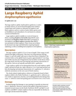 Large raspberry aphid is notable as a vector of viruses in Rubus, including Raspberry leaf mottle virus (RLMV, semi-persistent) and Raspberry latent virus (RpLV, persistent) in red raspberry, and Black raspberry necrosis virus (BRNV, non-persistent) in black raspberry. These viruses are to blame for decreased cane vigor and field decline requiring frequent replanting, as well as crumbling fruit symptoms in red raspberry.